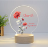 Illuminate your space with the gentle glow of your birth flower. This enchanting LED night light celebrates your unique floral identity, casting a soft, warm ambiance perfect for bedrooms, nurseries, or any room needing a touch of natural beauty. Each design captures the delicate essence of monthly birth flowers, making it an ideal gift for birthdays, new arrivals, or personal indulgence. Energy-efficient LED technology ensures long-lasting brilliance without the heat, while the soothing light creates a calming atmosphere that helps you drift into peaceful sleep. Transform your surroundings into a botanical sanctuary with this thoughtful, decorative accent piece.